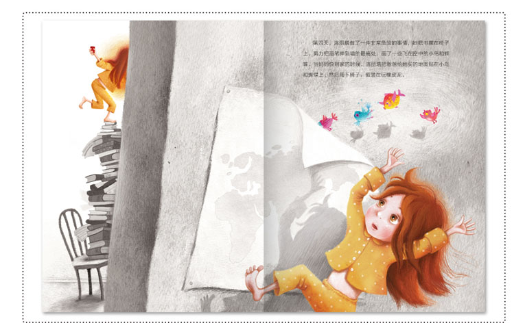 ★ 整本绘本设计流畅,富有童趣。绘画语言颇具特色,在解读故事时采用了巧妙的绘画语境上的处理,如在前后使用“黑白”与“彩色”对比的方式引导阅读,非常照顾儿童的阅读体验。