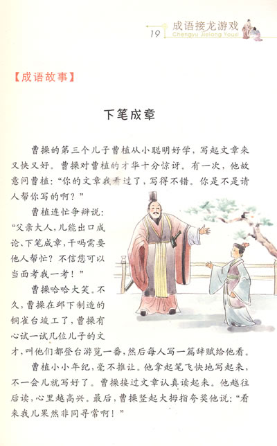 成语接龙形式活泼,让成语变得简单易记。此外,书中还有成语的释义,并穿插了一些富于历史知识和教育意义的成语故事,让孩子读起来趣味盎然,受益匪浅。