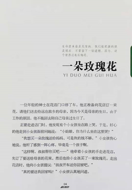 孩子是鲜嫩的幼苗,只有不断浇灌,才会长出明媚的花朵,结出丰硕的果实,并成长为坚强的大树。《成长胜经》丛书,通过这些短小、生动的小故事,在孩子的心灵花园,播下爱和梦的种子,提供丰富的生命养料,使他们向着真、善、美的阳光,更健康更温暖地生长。