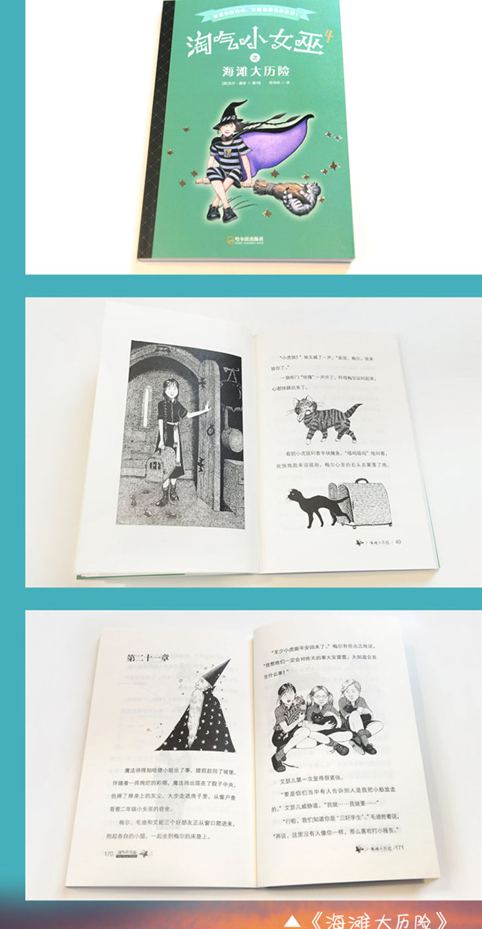 《海滩大历险》 梅尔在学校组织的度假中遇到了大麻烦。 梅尔·哈勃是凯奇女巫学校差劲的小女巫,她一直想赶上大家。为此校长给了她一只优秀的黑猫,把她那只又笨又胆小的虎斑猫送到了厨房。梅尔舍不得小虎斑,偷偷救出了它,并带着它和同学们去海边度假。这家伙给梅尔惹了不少麻烦,不过这次梅尔却因祸得福。那么她到底做了什么,让魔法师对她刮目相看呢?