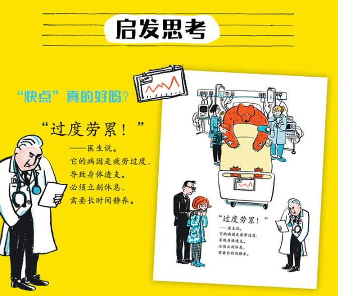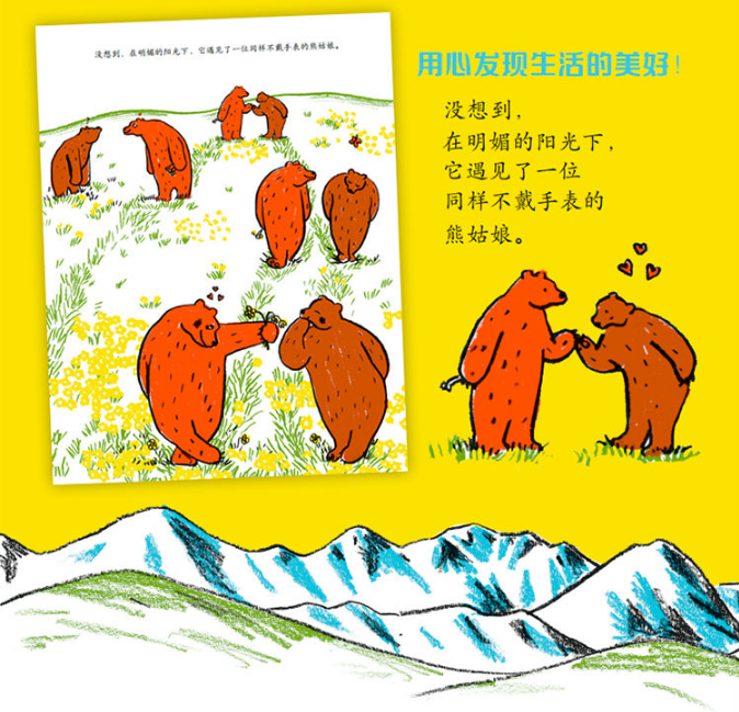 我认识一只大熊,啥都好,就是爱迟到。它的一天就是从迟到开始的,起床就已经晚了,连早饭都没来得及吃,上学还是迟到了。在学校里,它也总是比别人慢一拍。别人下课去活动时,它还不得不在教室赶作业。午饭当然也迟到,课外小组更别提了,就连放学,它都会因为迟到赶不上校车而步行回家!一家人都为它着急,最终大家发现,大熊之所以迟到,是因为它不会看表!不会看表就不会有时间观念!于是,这场与时间的赛跑就从教它看表开始了……