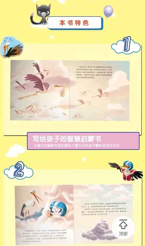 本书是《飞屋环游记》的番外,讲述了云朵与送子鹳的故事。天空之上是云朵的世界,在那个世界里,每朵云都在创造可爱的宝宝,然后由白鹳将它们送到每个家庭。几乎每朵云都是这样的,除了格斯。格斯是一朵超小的云,他只知道怎么制作那些凶悍的短吻鳄和易怒的豪猪!这对于佩克—格斯的工作拍档和最好的朋友—而言,就有些棘手了。但就像格斯和佩克发现的那样,有些时候你最需要的是团队合作。