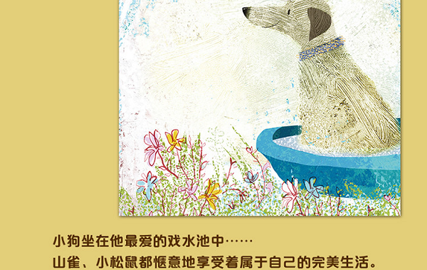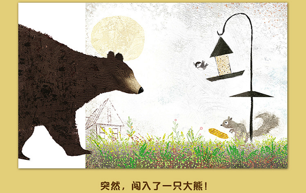 暖暖的太阳、凉凉的水、满满的鸟食……小猫、小狗和山雀在伯特家的院子里怡然自得地享受着这一切。 突然闯入的一只大熊,打破了院子里的宁静。小猫、小狗和山雀仓皇逃进伯特的屋子里。完美的一天,似乎就此结束…… 但院子里的那只大熊,吃饱喝足后正心满意足地躺在花床中打盹儿,享受着属于它的完美生活。