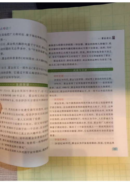 《霍金传记/一本不得不读的世界名人励志读物》讲述了霍金是一个富有传奇色彩的科学家,他身患肌肉萎缩性侧索硬化症,全身瘫痪且不能说话,被锢在轮椅上。身残志坚的他,对科学的探索并没有止步,甚至更加勤奋。在锢在轮椅上的二十年里,他仍能做出巨大的科学贡献,被誉为继爱因斯坦之后杰出的理论物理学家。《霍金传记/一本不得不读的世界名人励志读物》将全面介绍霍金小时候的才华乍现到他成年后逐步绽放的智慧之花,书中内容不仅涵盖他的童年、少年及在大学的日子,而且还写了他的婚姻生活,将多方面阐述他的传奇人生。