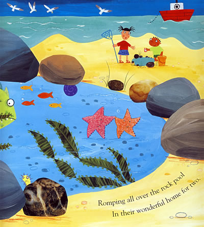 小寄居蟹找到一个漂亮的壳,正适合拿来当作新家,可是海葵和毛足虫也想要这个壳,还要面对可怕的大鱼和海鸥的攻击,寄居蟹该怎么办? 读Julia Donaldson的作品时,常可感受到她对自然万物的热爱和环保议题的关心,讲述一只小寄居蟹前后遇到两个海洋生物(海葵和海毛虫)并与他们共享同一个家的故事,除此之外,这本书也讲述到海洋垃圾对于海洋生物的影响,以及人类过度捡拾贝壳造成寄居蟹寻壳不易的问题。