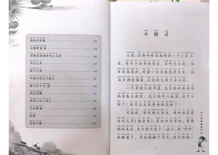 尼尔斯骑鹅旅行记》写的是一个名叫尼尔斯的14岁□孩,他的父母都是善良、勤劳却又十分贫困的农民。而尼尔斯不爱读书学习,总是喜欢调皮捣蛋,捉弄小动物,惹是生非。一个初春,他在家里因为捉弄一个小精灵而被□成一个拇指般大的小人儿。因为担心家里的雄鹅跟着大雁群飞走而跳到了鹅背上,不想却被雄鹅带走。小尼尔斯骑在鹅背上,跟随着大雁走南闯北,周游□□各地,看到了各色奇峰异川、旖旎风光,学习了祖国的地理历史,听了许多故事传说,也饱尝了不少风险和苦难。在漫游中,他从旅伴和其他动物身上学到了不少优点,同时也在与他人的接触中,逐渐改正了自己淘气调皮的缺点,培养了助人为乐的优秀品德,同时也对学习萌生了无限的兴趣。当他重返家乡时,不仅重新□成了一个高大漂亮的孩子,而且成了一个温柔、善良、乐于助人且又勤劳的好孩子。