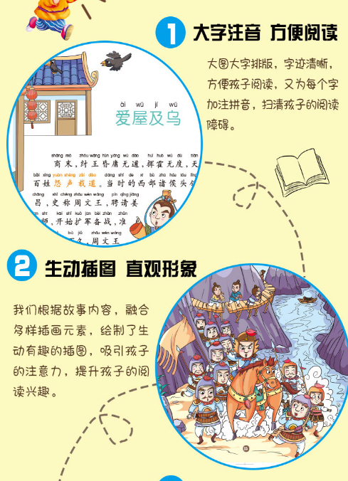 成语是人们长期以来惯用的简洁精辟的定型词组 或短句,它言简意赅,深刻隽永,是汉语词汇中的璀 璨明珠。侃侃编*的《中华成语故事(拼音版)》所收 录的成语来源广泛,有的来自历史故事,有的出自神 话传说,有的则是从民间笑话中提炼出来的。每一个 成语都通过一个精彩生动的故事来展示,体现了古代 人民的生活、精神和智慧。这些成语具有经典性、哲 理性、时代性、实用性、趣味性等特点,每则故事内 容生动有趣、深入浅出、通俗易懂,读后耐人寻味、 启迪智慧。书中对每则成语都进行了详细的解释,能 恰当地帮助学生理解成语的意义并自如地运用这些成 语。同时给出的成语出处,体现了成语的源远流长以 及有案可查。是可供小学生使用和参考的**读本, 是一本能够满足小学生课外阅读以及学习的参考读物 。