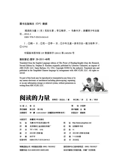这是一本由枯燥数据和生动结论相结合的书。作者极力想证明的是自由阅读(free voluntaryreading,简称FVR)的重要性。FVR就是无压力阅读,为了兴趣而阅读,不需要写读书报告,不必回答每个章节后的问题,也不用为每个生字查字典。FVR不仅仅对学习母语有帮助,也是让外语能力登峰造极的方法。与传统的语文教学方法相比,“阅读是唯一的办法,唯一能同时使人乐于阅读,培养写作风格,建立足够词汇,增进语法能力,以及正确拼写的方法”。如果你没有耐心读这本书的分析过程和数据资料,你或许可以抽绎出这个结论。《阅读的力量》要阐释的是“自由阅读的力量”。