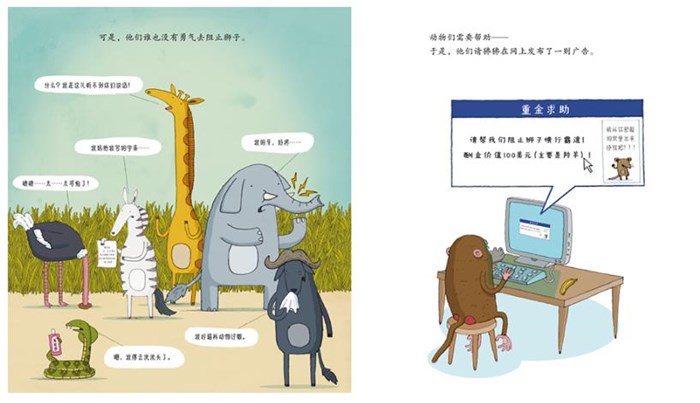 这是一本幼儿图画书。狮子非常非常恶劣,他折磨所有非洲大草原上的动物,直到他们终于再也无法忍受。他们发布广告求助——一只小兔子做出了回应。没人认为这样一只小兔子有足够的勇气和足够的力量能阻止狮子。可他也许足够聪明呢?