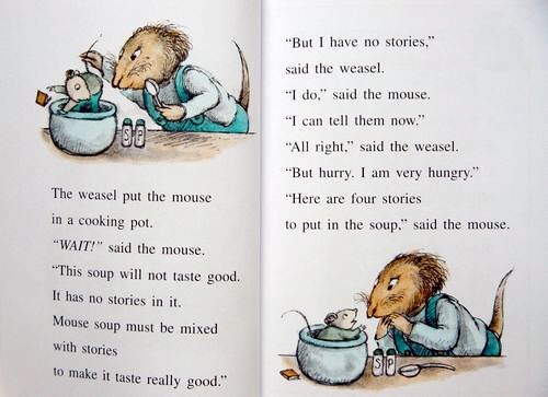 Weasel is ready for his dinner, and poor Mouse is it. Can he stop the weasel from serving up mouse soup for supper?