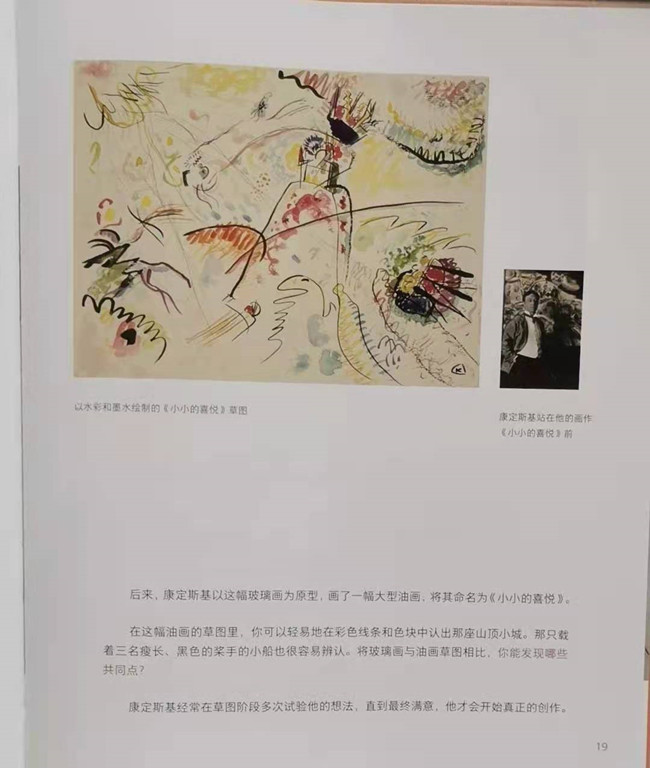这套精致的儿童探索艺术书共四册,分别介绍了四位艺术家——马蒂斯、毕加索、米罗、康定斯基。这本《发现艺术家:谁是康定斯基》精选了康定斯基著名的画作,配合文字介绍,为读者展示了他与艺术相伴的日子。书中配有康定斯基的大事年表,梳理了他的人生经历,他在艺术创作上的进步与转型。丰富、鲜明的色彩是他的作品的特点,画面简洁、抽象,用色彩铺陈出他眼中的世界以及他的内心。在康定斯基的世界中,声音与色彩是融为一体的,每一种颜色都对应着不同的声音,每一种声音都能够让康定斯基看到不同的色彩和图形。这一切都在激发着读者的好奇心和想象力:我们也能从康定斯基的作品中听到每一种色彩的声音吗?在那些微妙的几何图形中,康定斯基传递着怎样的暗语呢?