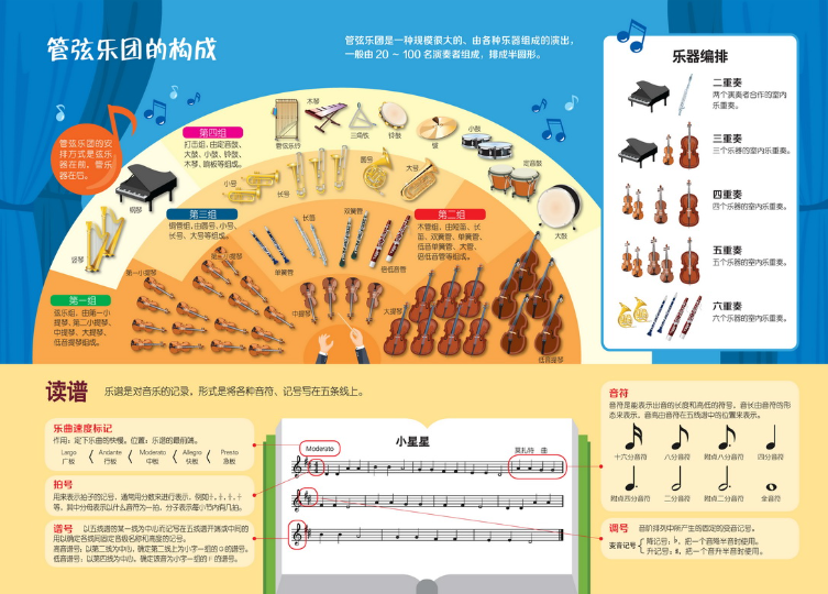 本书以“音乐”为主题,让孩子们跟随主人公一起学习乐理、乐器和音乐家的相关知识。本书中向孩子们介绍了什么是音乐,音乐的种类和起源,乐谱和乐器演奏的基本知识,巴赫、海顿、莫扎特、贝多芬、肖邦等*著名音乐家以及韩国本土的音乐知识。本书是以漫画故事的形式向孩子们普及音乐知识,拓宽他们的知识面,激发他们的求知欲,而漫画的有趣情节和图画地夸张诙谐,也会让孩子们对他们可能并不熟悉的音乐知识充满好奇。