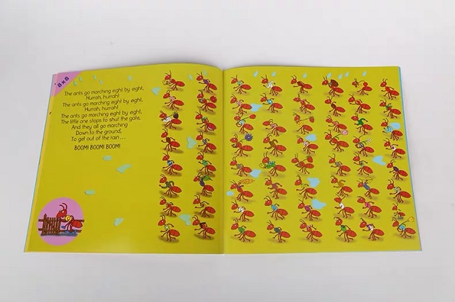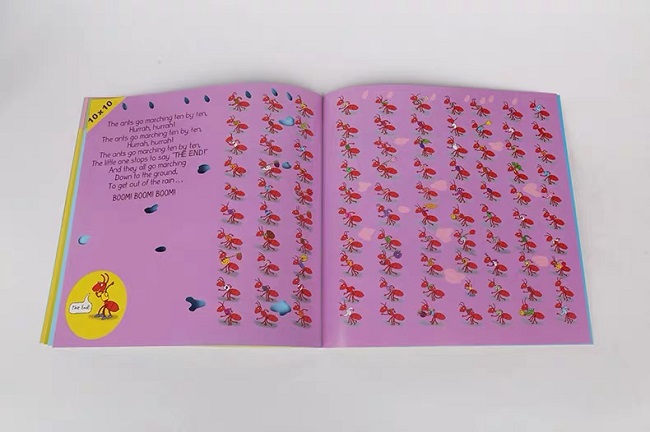 发现了吗?这本书中的洞洞都是雨点和小水坑的形状哦,而且每只蚂蚁的装扮都不一样,每翻一页蚂蚁越来越多也越来越小,你们可以在这么多的蚂蚁中找到那只小蚂蚁吗?偷偷告诉你们,可以从他的穿着和身形的大小找到它哦。同时家长们也可以利用这本书教孩子乘法的算术。