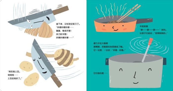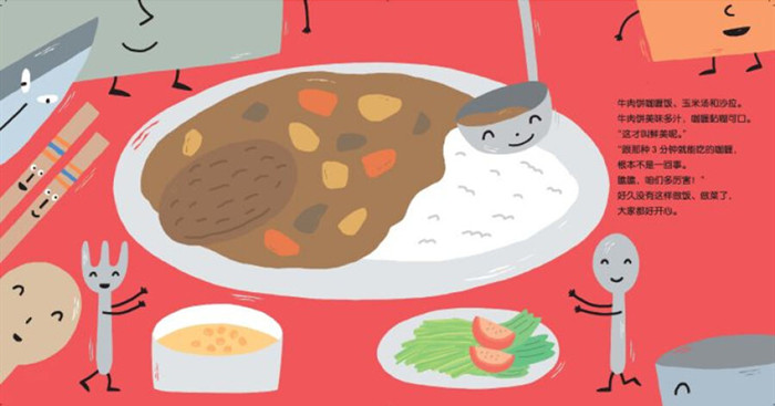 本书是一本幽默又温暖的食育绘本,讲述了厨房里发生的一场争执。厨房里的厨具们,由于方便食品的到来,失去了用武之地,心中愤愤不平,于是向方便食品发起了挑战,菜刀、汤锅、长筷子等纷纷展示了自己的精湛技术。但后来他们才知道,原来是这家的妈妈生病了,才不得已食用方便食品。最终,双方取得了和解。本书有助于对孩子进行食物启蒙,客观地认识方便食品的优势与劣势,了解各种厨具的功用,学会尊重和喜爱精心烹制的食物。