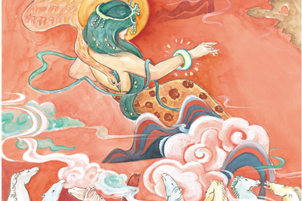 海外仙山、奇人异兽、神话传说在冒险故事里依次登场。洗月亮的常羲、追太阳的夸父、长着翅膀的人、和老鼠一样大的牛……不再是印在纸上的一张图、几个字,而是成为了故事中有血有肉、有个性的存在,活了起来。