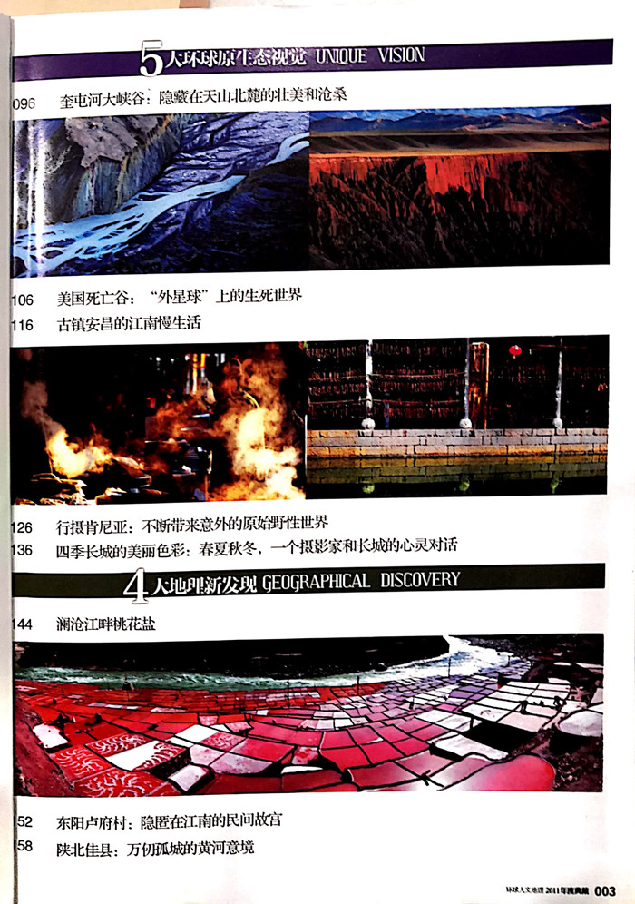 晋陕大峡谷:黄河变黄的地方大峡谷千里千观;山与河,水与石的较量峡谷古镇群;即将隐退的千古风流火焰一样热烈的峡谷民俗探秘中国四大处女峰冷酷的卡瓦博格峰:梅里雪山,登山者永远的禁地刃脊上的扇子徒;玉龙雪山难以逾越的咫尺天涯昆仑山巅玉虚峰:地平线外还有地平线……沉寂的布喀达坂:“魔鬼城堡”上的青海第一高峰猎风远去:世界狩猎现状纪实青海都兰:探寻中国狩猎的隐秘样本世界狩猎游戏的尽头