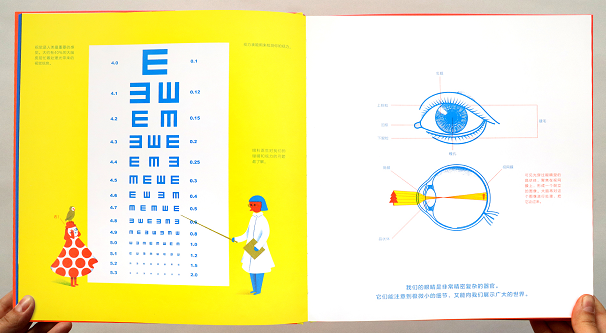 《视觉之书》是一本富有艺术感的科普图画书,适合5岁以上孩子阅读。作者用鲜明的潘通色和富有表现力的艺术图像来呈现丰富的视觉科普知识,如读者眼睛结构、影像成像原理、视力与脑科学、丰富的色彩世界、镜子的历史与照镜原理,人的表情、图像符号、眼睛、光学仪器、视错觉、动物的眼睛和视觉、摄影和电影、绘画艺术、布莱尔盲文等。画面融合了抽象艺术、布莱尔盲文各种图像表现风格,对科学知识的表达方式做了全新的尝试,让读者提升感知能力,重新认识我们所生活的世界。看见不仅是用用眼睛看,更重要的是通过心灵去看,去理解和探索大千世界。