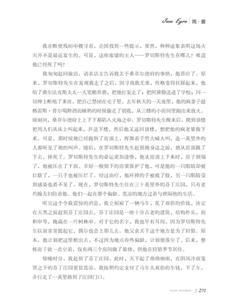 简·爱父母早亡,寄居在舅舅家,她逆来顺受,却依然挨打受骂,终于有一天她的恐惧和忍耐到了极限,*后发展到对舅母当面反击。舅母把她送进孤儿院,后来她成为罗切斯特先生家的家庭教师。罗切斯特先生脾气古怪,但经过一段时间接触,简·爱爱上了他。在这段经历中,简·爱进一步成长,变得更加热情、自尊、倔强。然而在他们举行婚礼时,梅森闯进来指出古堡顶楼小屋里的疯女人是罗切斯特先生的妻子。简·爱不愿作为情妇,离开了桑恩费尔德,来到一个偏远的地方,在牧师的帮助下,找到了一个乡村教师的职业。在牧师向简·爱提出结婚时,她想起了罗切斯特先生,当赶回桑菲尔德时,古堡已成废墟。疯女人放火后坠楼身亡,罗切斯特也受伤致残。简·爱找到他并大受震动,*终和他结了婚,过上了自己理想的幸福生活。