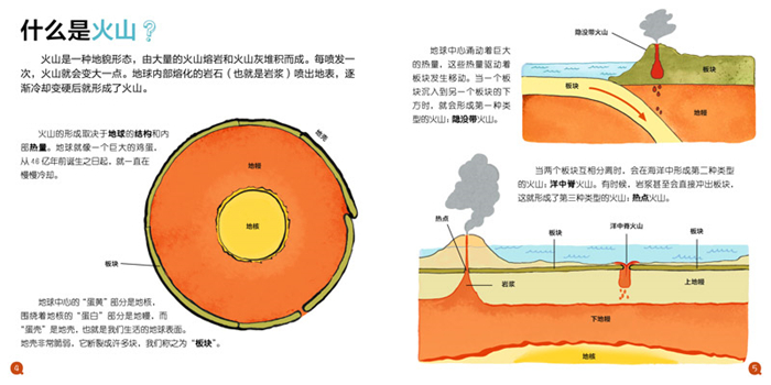 《我的小问题·火山》用孩子能够听懂的语言,正面、科学又不失趣味地地回答了什么是火山、地球上到处都有火山吗、火山喷出来的是火吗、什么是火山苏醒、火山喷发会很危险吗等跟火山相关的问题。每个问题下的引申性小知识点还能帮孩子系统了解更多火山知识,充分满足孩子的好奇心,塑造孩子的世界观。法国米兰出版社特约插画师精心绘制场景式插画,栩栩如生的形象,充满动感的色彩,带给孩子更加美好的阅读体验。