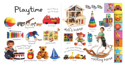 Have hands-on fun teaching your toddler first words with this tabbed board book from "My First". With lots of fun-filled pictures, simple questions and things to name, your toddler will love learning first words using this colourful board book. Read it together and help them turn the pages using the intriguing picture tabs; identify the goldfish, teddy and car, and even encoura...
