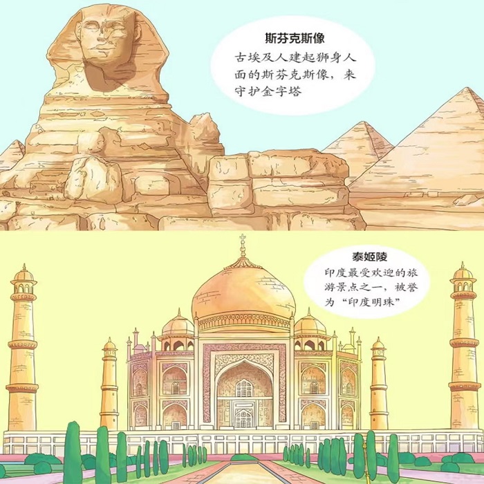这是一本画给孩子的世界人文地理绘本,也是一本儿童国家地理百科,更是一本以北极熊灿烂和小女孩阿朵朵为主角的旅行游记。两位主人公去到英国、法国、希腊、埃及等18个国家,不仅体验当地的风土人情,还为大家介绍该国家的特色文化、历史地理、建筑艺术、服饰美食等各方面的知识。同时,书中的手绘图画还原了各个国家的风格,翻开即置身那奇妙的国度,让孩子以他们喜爱的方式发现世界、认识世界,乃至热爱这个世界。