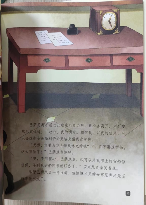巴萨尼奥不忍心让安东尼奥为难,正准备离开,只听安东尼奥说道:“放心,我的朋友。相信我,以我的信用,可以去找那个放高利贷的夏洛克借到这笔钱。”