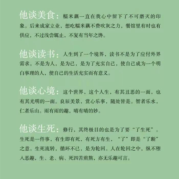 梁实秋先生是一位生活家。对生活心存热爱,活得有烟火气儿,对世间万物皆有情,体察得细致。本书分为四个部分,包含人间风味、读书札记、怀人纪事、极具人生哲理和生活气息的散文名篇,全面收录《馋》《烧鸭》《想我的母亲》《雅舍》《了生死》等五十余篇梁式经典之作,多角度多面性呈现,力求展现梁实秋先生的精神世界与生活志趣。冰心曾这样评价梁实秋:"一个人应当像一朵花,花有色香味,人有才情趣,我的朋友,男人中只有梁实秋最像一朵花。"先生那些包罗万象、机智闪烁的文字告诉我们,人活在世上,不过想生活更有些烟火气儿。