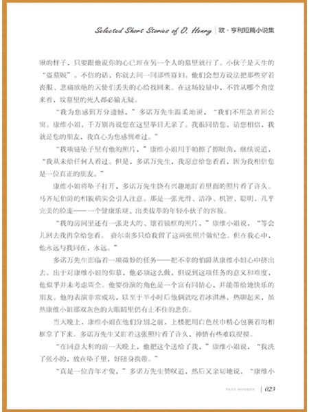 《欧·亨利短篇小说选》选收欧·亨利杰出的几十篇短篇小说代表作,其中有些已成为世界短篇小说中史上的经典名篇,如《麦琪的礼物》、《警察和赞美诗》、《最后一片藤叶》等。这些作品富有人情味和生活情趣,脍炙人口,流传不衰。
