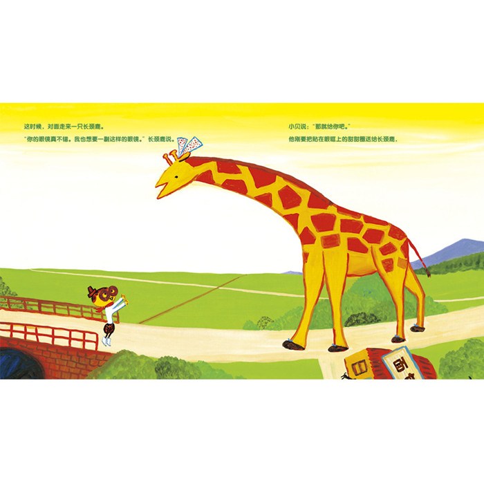 小贝去散步,一路上全是奇妙事!鱼蹦出来变成了小贝的帽子,甜甜圈飞来变成眼镜,鱿鱼飞出来变成领带……一路上的新鲜玩意儿让路过的动物们羡慕不已,小贝也慷慨地把这些好玩的宝贝赠给他们。后,小贝遇到爸爸,这次可不能把爸爸送给别人啦!
