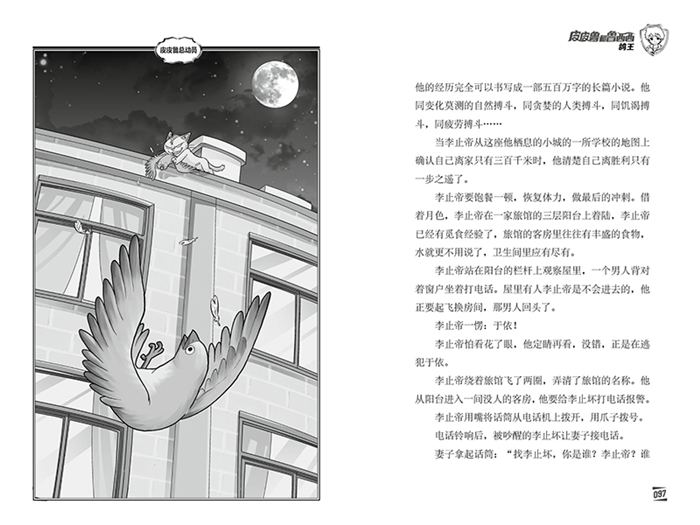 皮皮鲁,郑渊洁童话中的男一号,他聪明、淘气、正直善良,但从不循规蹈矩。他的双胞胎妹妹鲁西西听话,乖巧,老师家长眼里的好学生。这本书里皮皮鲁的朋友们可谓是各显神通。王府医院的几位患了绝症的小伙伴在仓库里发现了一只穿着风衣的猫,没想到这只猫却给他们带来了新的生命;科学家居然将人的基因和鸽子的胚胎合二为一,培育出了一只能像人一样思考和说话的鸽子;一只叫刺猬球的小鸟羡慕被人豢养的安逸,而在被关起来后终于知道了自由的可贵……