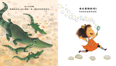 和妈妈一起来动物园的小女孩,因为妈妈的一句话勾起了对自己婴儿时代的极大好奇心:“你小时候啊,就像那只小袋鼠一样,是个小不点儿。”孩子们都有自己都记不起来的婴儿时期——“像小鸭子一样嘎嘎地哭个没完”,“像小鸵鸟一样脑袋上只有那么一小撮头发”……她好奇地听着自己小时候的事情,不禁会咯咯地笑起来,还不忘反驳一句“我也是那样吗?可是我现在……”然后大声说道:“才不是呢!我已经长大啦!”