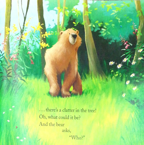 Eager to play in the fall leaves, Bear heads out to find his friend, Mouse, but is startled by clatter in a tree. Determined to find out who is making all the noise, Bear goes on a short journey, picking up all of his friends on the way, until he discovers a quite bashful owl whom he declares their NEW FRIEND!