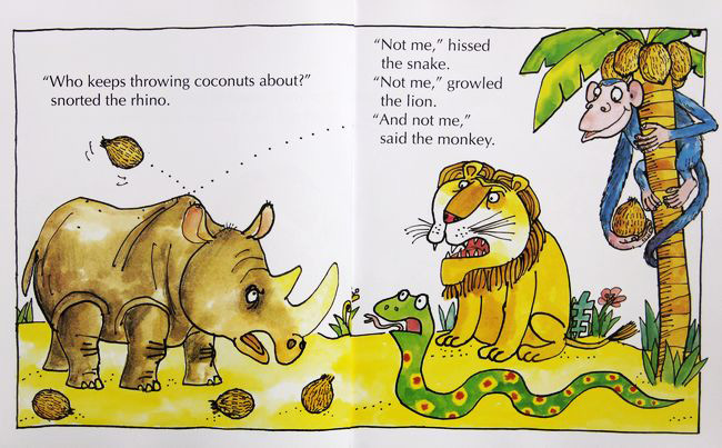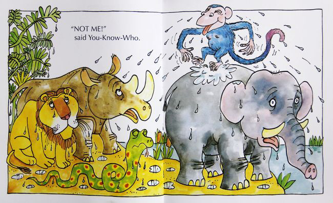 在一次次猴子不断的说着“不是我”的话中,作者精准的描绘出这只厚脸皮又不知反省的猴子。 作者以玩笑的口吻,提醒着小读者:“或许你曾经被称做过厚脸皮猴,但我可希望这种情形并不常见! ” 这本以丛林动物为主角的故事书,充满了动感和热闹的气氛。简单的故事情境,却有着生气无限的节奏,重复的句型建构出完美的结局,保证让最不喜欢阅读的读者,都可以从头笑到尾。