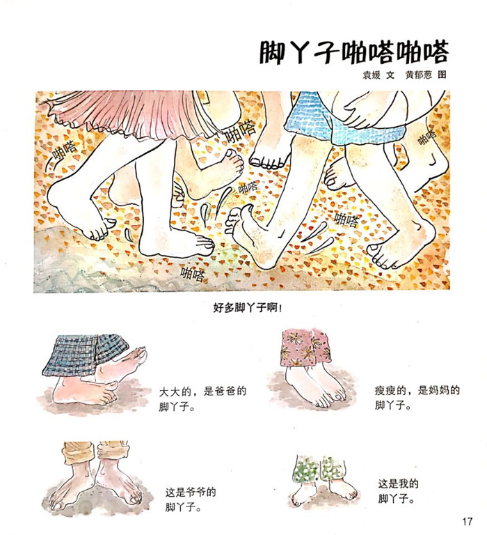《我的骨头》先用一幅完整的骨架图直观地展现骨架的结构,随之形象地画出人和动物骨架的真实模样,让孩子了解骨骼和整个身体之间的关系。《我们的手 》讲述了很能干的双手,除了正常的功能,它们还有许多“小动作”能传达各种不同的情绪。《脚丫子啪嗒啪嗒》告诉孩子每个人的脚丫子都长得不一样,而且感觉都很敏锐,可为什么有些人走路很容易累呢?答案就在书中。肚脐眼儿是身上一个小小的源,它好像不是太有用处,那它为什么存在呢?《肚脐眼儿》 将做出解答。