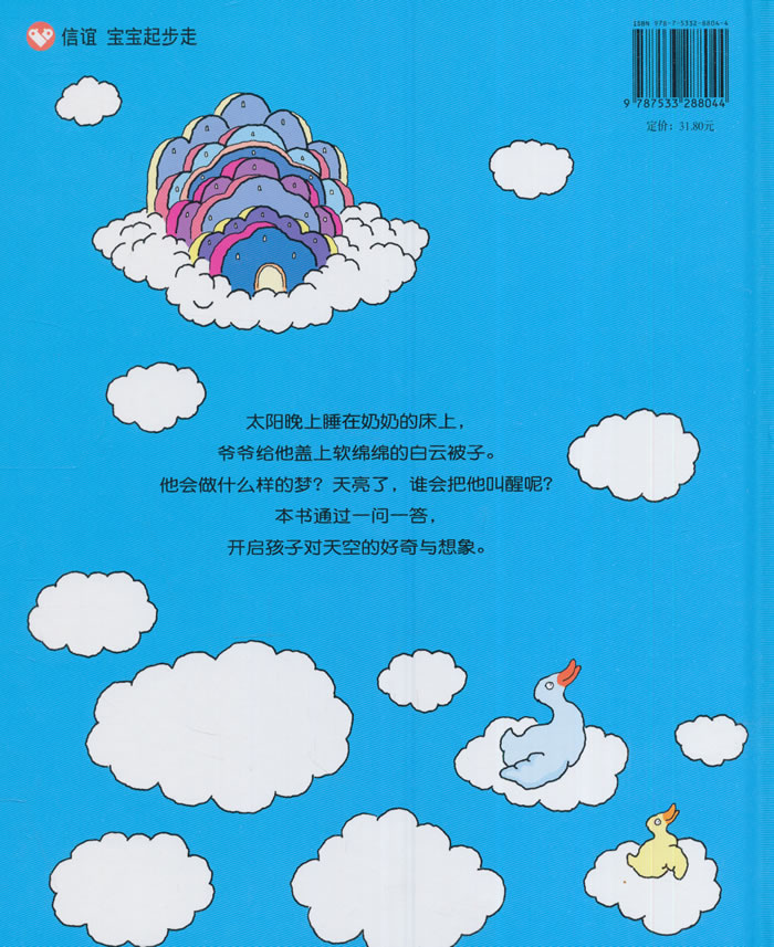 一连串天马行空的问题,引出一连串充满趣味和想象力的答案,一本充满智慧、愉悦和诗意的书,陪着孩子打破砂锅问到底,进入美妙的思考空间。太阳晚上睡在奶奶的床上,爷爷给他盖上软绵绵的白云被子。他的爷爷奶奶是谁?他会做什么样的梦?天亮了,谁会把他叫醒呢?本书改编自亚美尼亚儿歌,通过一问一答,开启孩子对天空的好奇与想象。