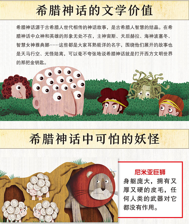 ◎意大利知名绘本作家玛丽莎•维斯蒂塔用富有冲击力的木版画风格诠释出《希腊神话》的魅力,为孩子的阅读带来更多的乐趣,也丰富了孩子的视野。