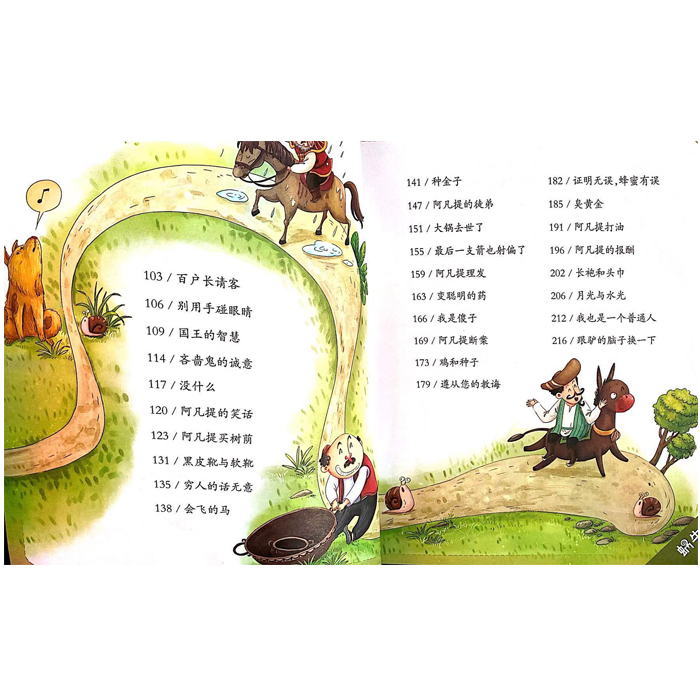 《阿凡提的故事》一书精选了广泛流传的阿凡提的故事,这些故事或幽默风趣、或充满智慧,让人忍俊不禁。在《阿凡提智斗巴依》中,阿凡提用智慧惩罚了贪心的巴依;在《阿凡提巧答难题》中,阿凡提巧妙地解答了商人提出的难题,让商人羞愧不已;在《钱包和钻石戒指》中,阿凡提用智慧帮助可怜的穷人并惩罚了可恶又贪财的巴依……阿凡提的这些故事无一例外都彰显了他的幽默风趣与智慧,让孩子们在轻松一笑的同时变得灵活、爱动脑筋。