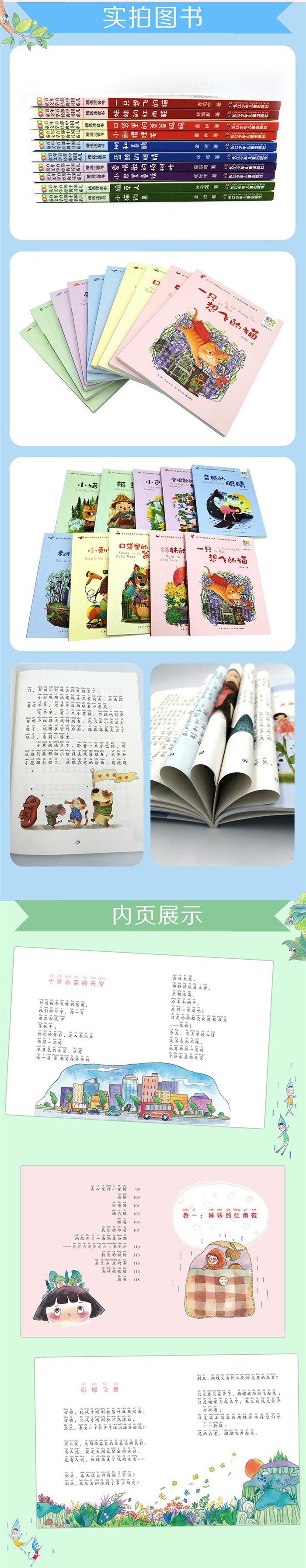 《稻草人》:★多次入选中小学语文教材,影响了几代人的传世之作!★新中国*部为儿童所写的现代童话集,系统展现了中国童话奠基者和著名儿童教育专家叶圣陶的文学成就和儿童教育理念。★“散文式”童话,堪称美文典范,诗意盎然! 《蓝鲸的眼睛》:★曾获全国少年儿童文艺创作荣誉奖。★“童话王子”冰波作品精粹,引领孩子走进极富诗意的幻想世界!★《企鹅寄冰》《好天气和坏天气》等多篇作品入选教育部小学语文统编教材。★让著名作家郭敬明受益一生的童话! 《小巴掌童话》:★神奇的“小巴掌童话”,带孩子走进卷心菜会说话、蝴蝶会读报的奇妙世界!★《青蛙写诗》《妈妈睡了》《称赞》等多篇经典作品入选教育部小学语文统编教材。★能一口气读完的“小童话”,让孩子感受“小童话”中的“大氛围”!