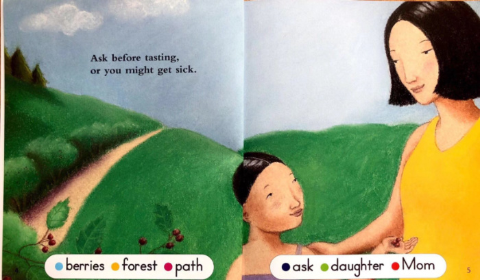 彩红点点标注的词汇,在图片里可以一一对应。根据相同点读发音,找到配对的词汇图像。边点变Talking跟读,看到字形时,迅速联想图片,完成记忆。