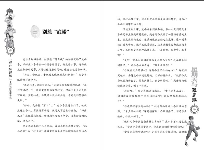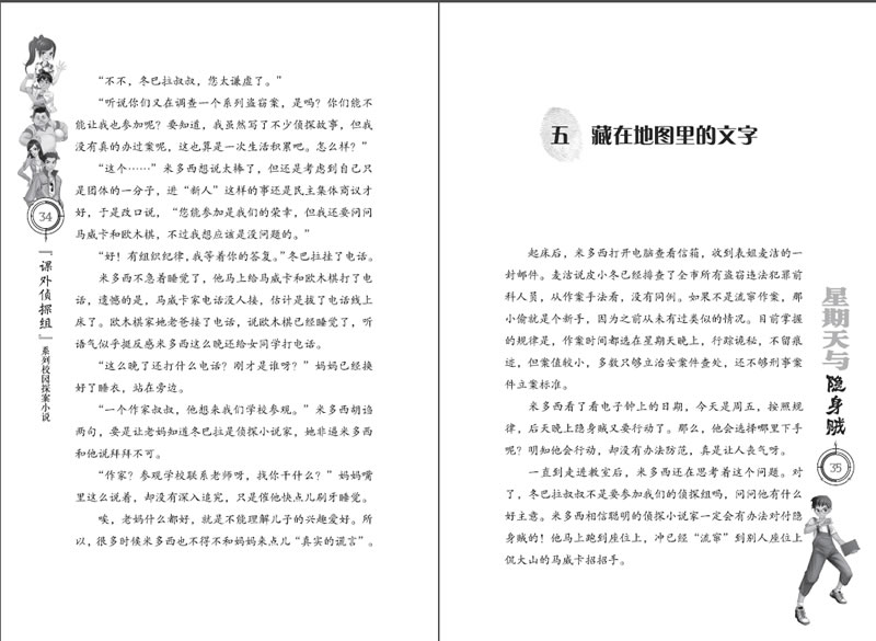 一路上,米多西设计了诸多方案,比如再组织一次抓贼行动,紧盯杜玫的举动,或者让表姐调查她有没有前科、让冬巴拉叔叔考验她是不是真的粉丝等等。但米多西又觉得这些方案不够“高级”,弄不好会“打草惊蛇”,真是伤脑筋呀!