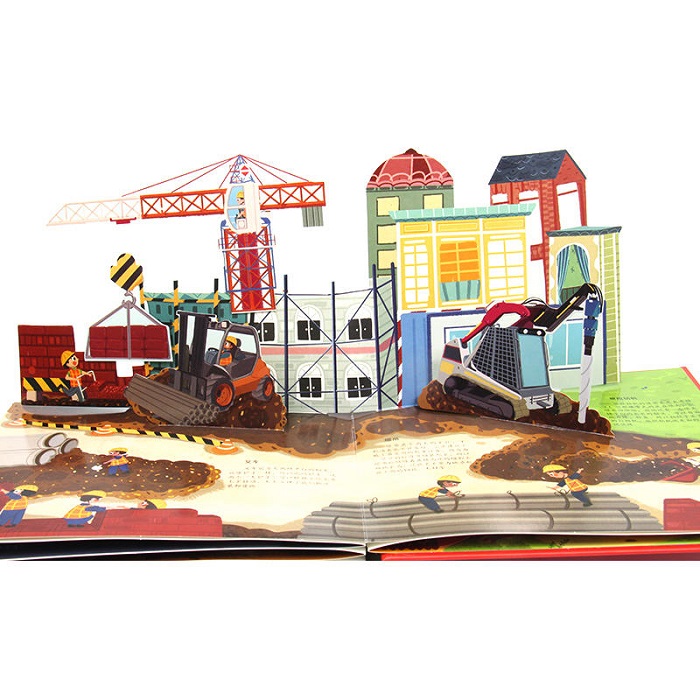 《热闹的工地》是以日夜轰鸣的工地为主题,生动展现了工地上各种精巧又庞大的工具车,有长着大铲斗的挖掘机、有专门“破坏”的拆楼机、有长着“大肚子”的混凝土搅拌车等等,让孩子们熟悉了解各种工具车辆,能学到更多的车辆知识。