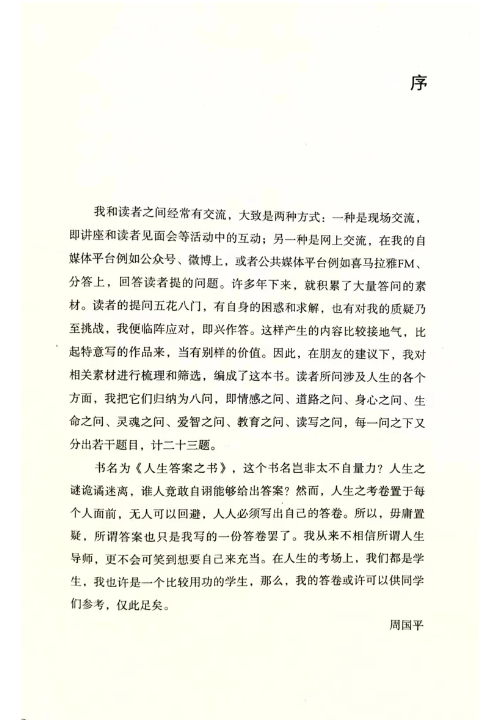 人生之谜诡谲谜离,谁人竟敢自诩能够给出答案?然而,人生之考卷置于每个人面前,无人可以回避,人人必须写出自己的答卷。所以,毋庸置疑,所谓答案也只是我写的一份答卷罢了。或许可以供同学们参考,仅此足矣。