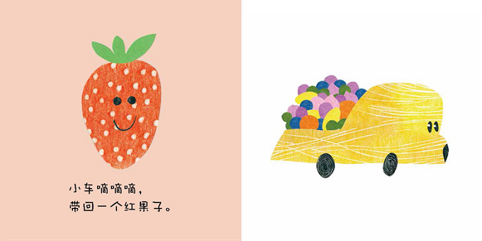 1. 小车嘀嘀嘀,一起学数数吧。 这是本让宝宝跟随小车节奏开心学数数的图画书, 一座山,两座山……小车每经过一座山,宝宝就能跟着数数,从一数到七。一个果子,两个果子……宝宝同样也能跟着果子的数量,从一数到七。这种节奏感,能带动宝宝数数的热情。 2. 小车嘀嘀嘀,一起认颜色吧。这是本让孩子看着有趣的果子快乐认颜色的图画书。红橙黄绿粉蓝紫,这些基本颜色和宝宝喜欢的果子相结合,能让宝宝快乐认颜色。 3. 小车嘀嘀嘀,一起吃水果吧。本书中出现了草莓、橙子、蓝莓等多种水果,宝宝还可以根据水果的形状和颜色,结合日常经验自己去猜测是什么水果,开拓想象力。 4. 小车嘀嘀嘀,一起玩游戏吧。本书经全国五所知名幼儿园实践,扫描书后二维码即可看幼儿园微课,一起来玩多种有趣的游戏活动。