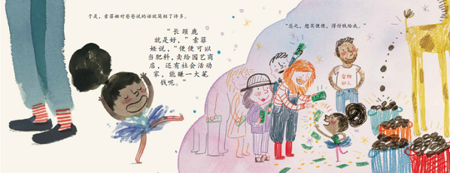 索菲娅想要一只宠物长颈鹿,于是她试图用不同的理由去说服家里的每一个家庭成员。可是,每一个人又都告诉她太啰唆了。最后,她终于找到了那个最合适的理由。 无论从语言学习,还是表达技巧,这本书对于处于语言发展期的儿童来都是说是很好的启蒙。
