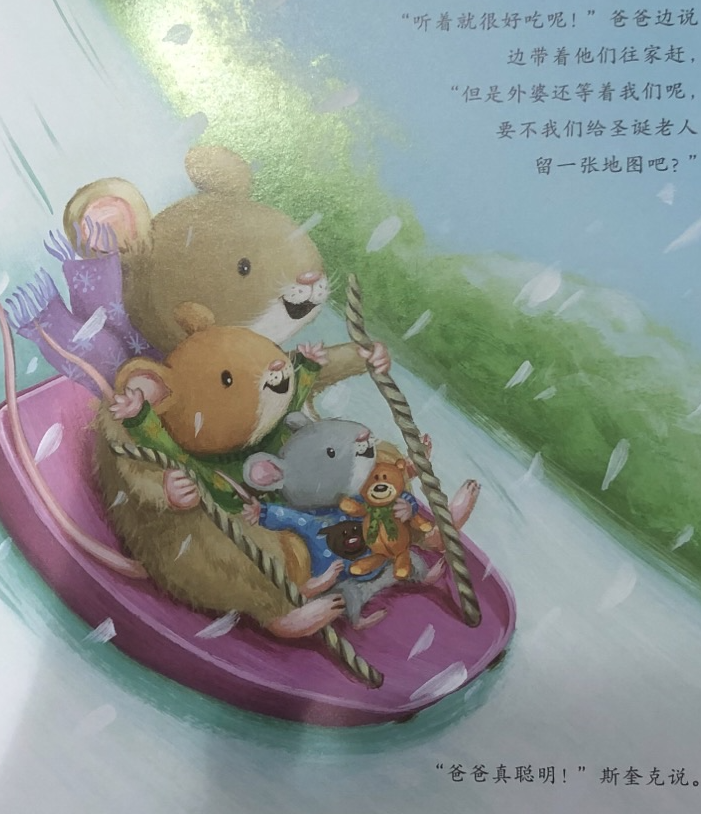 巴伯和斯奎克要去外婆家过圣诞节了,但是圣诞老人该怎么找到他们呢?他们试着给圣诞老人留下一张地图和寄去一封很大的信……但是等他们到达奶奶家的时候,发现那儿没有烟囱!圣诞老人该怎么进来呢?这下只能靠奶奶来拯救圣诞节了。奶奶做了一个圣诞老人滑梯,最后孩子们孩子们都收到礼物啦!