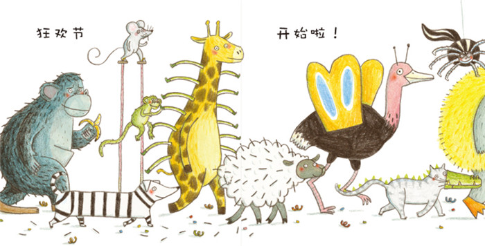 本书通过各种各样的动物参加狂欢节化装舞会的情境设置,营造了一个动物们化装、变身的视觉狂欢,同时也是读者集中认知各种动物特点,寻找动物之间的相似点、转化点并扩展想象力的阅读狂欢。