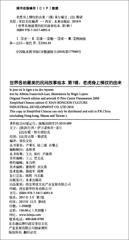 《世界各地最美民间故事绘本(第一辑):老虎身上的横纹的由来》由西安未来出版社出版。