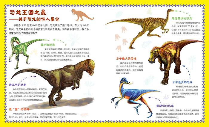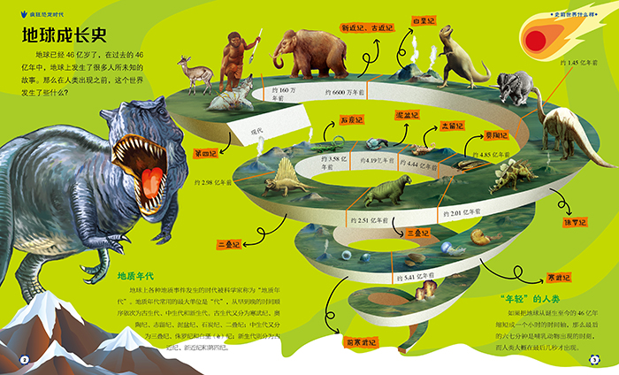 这套《疯狂的恐龙时代》全套共3本,精装12开,基本涵盖了恐龙的历史,全书有60余种恐龙、60多张知识卡片、100多张精美大图和110处细节讲解。