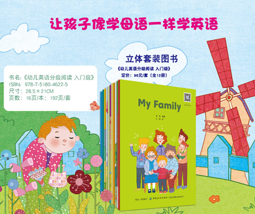 《幼儿英语分级阅读 入门级》一共12册,内容分别为:Say hello,my body,my family,What's the weather like today,can you see it,in the supermarket,sports,let's count and see,A penguin's trip,all the year round,feelings,animals。本套书以绘本的形式表达,每册一个主题,如“家庭”“颜色”“数字”“形状”等。每册都有相应的家长阅读指导,扫描封面二维码即可获取外教讲解视频