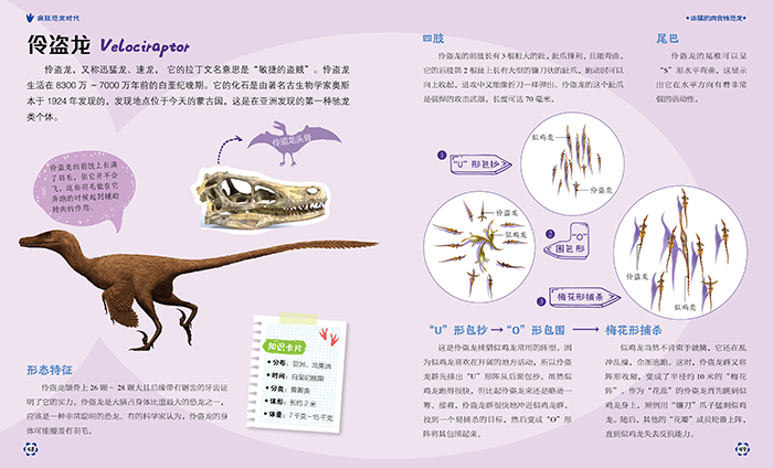 这套《疯狂的恐龙时代》全套共3本,精装12开,基本涵盖了恐龙的历史,全书有60余种恐龙、60多张知识卡片、100多张精美大图和110处细节讲解。